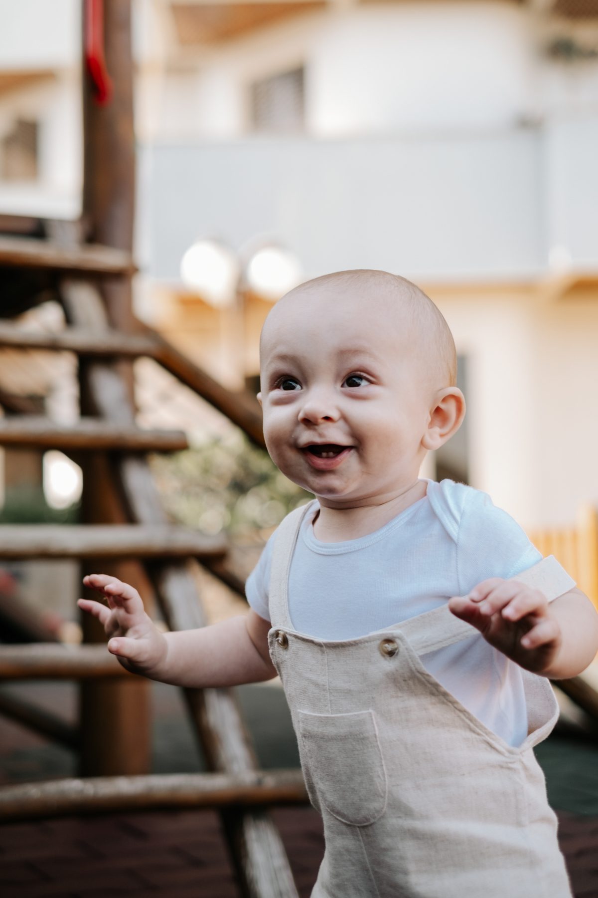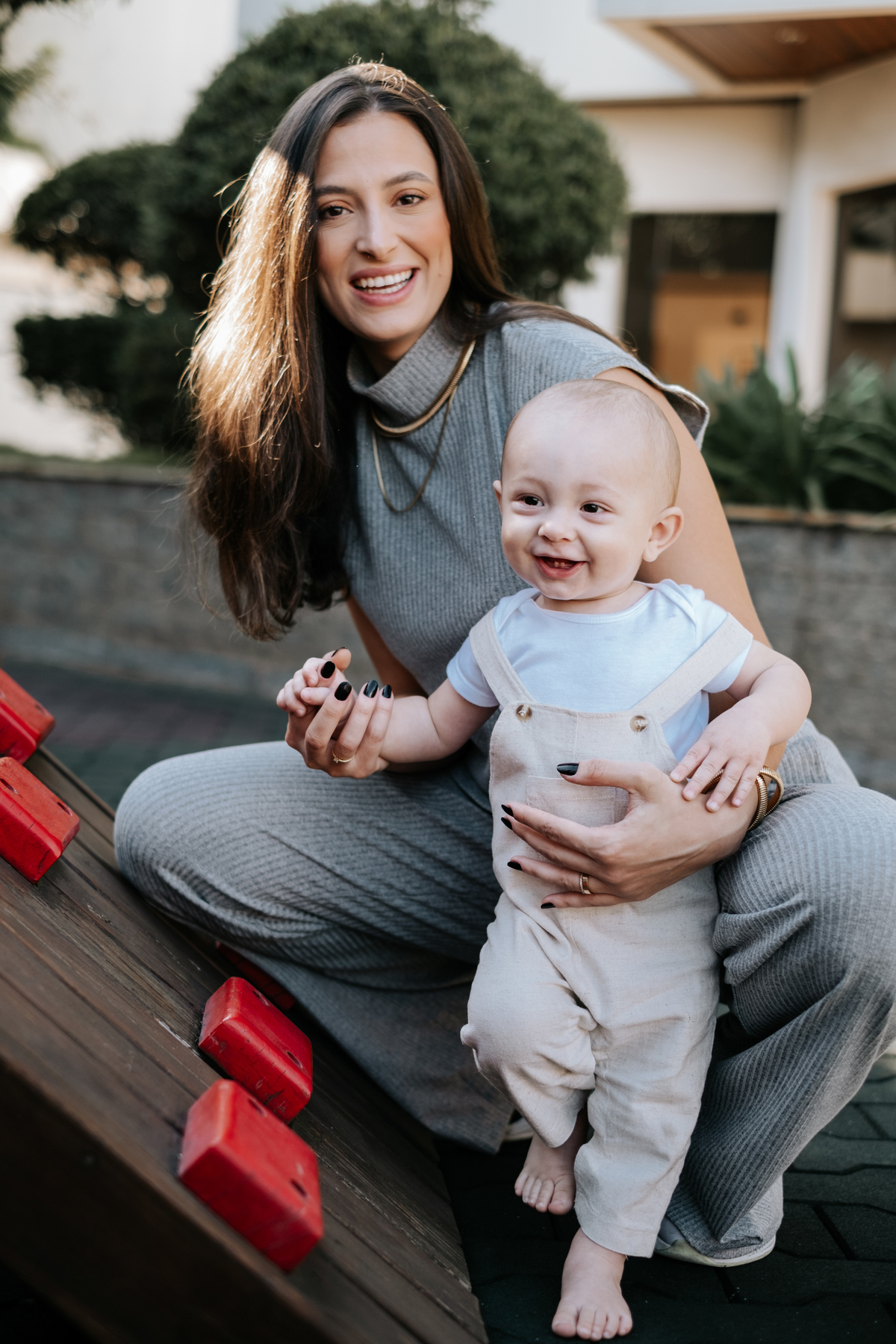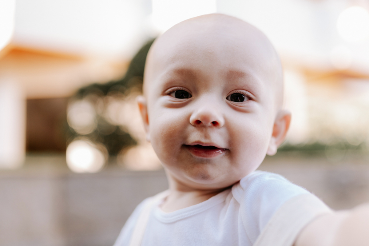 O Fillipo está descobrindo o mundo aos poucos, e esse acompanhamento do bebê aconteceu no próprio prédio da família, um espaço onde ele já se sente seguro e confortável.