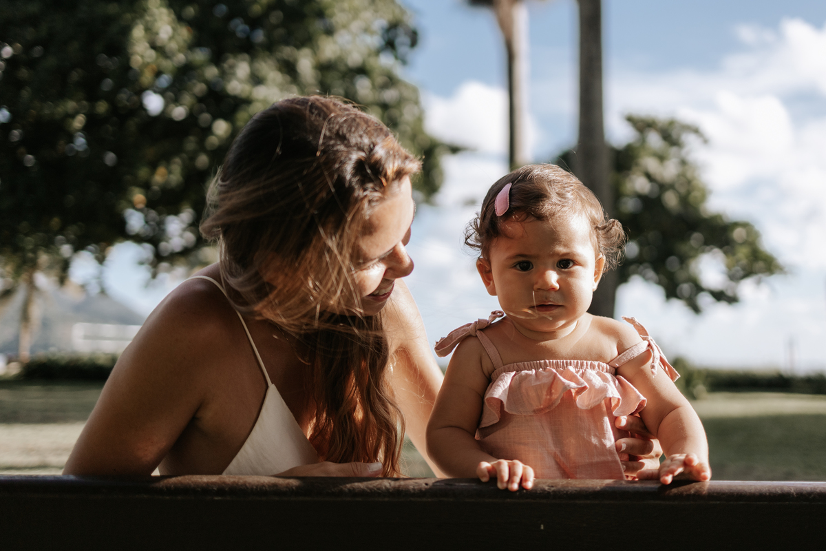 Com um olhar documental, realizamos fotos do ensaio valorizando a interação entre mãe e filha e a beleza dos ambientes ao ar livre.