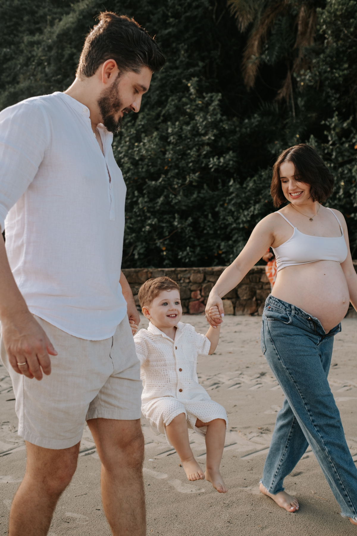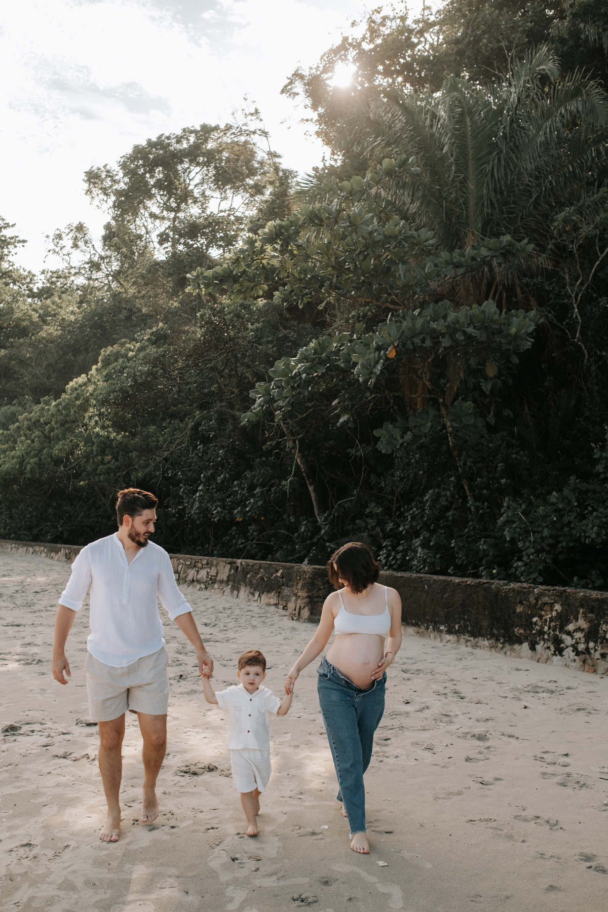 Com um olhar documental, realizamos o ensaio valorizando a interação da família e a beleza do ambiente, registrando a gestação de forma verdadeira e atemporal.