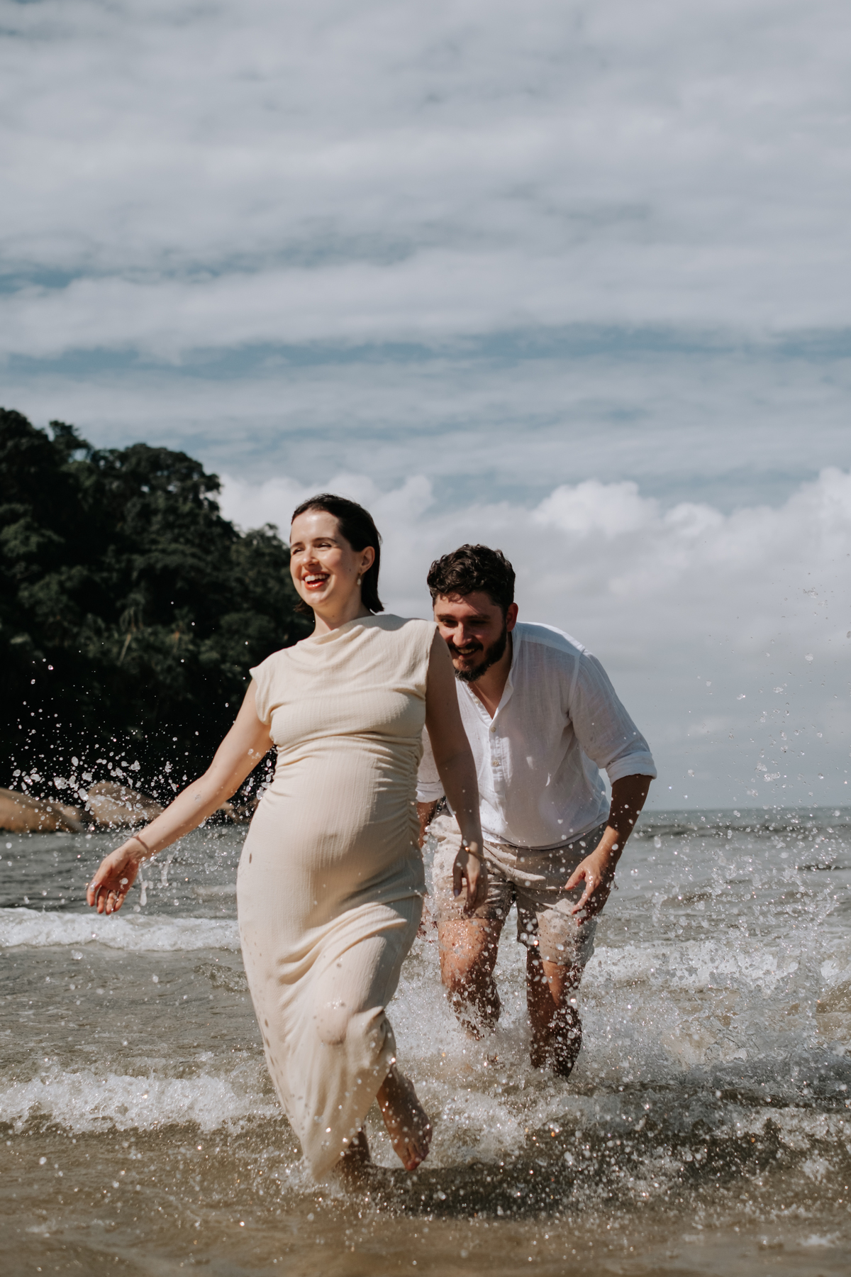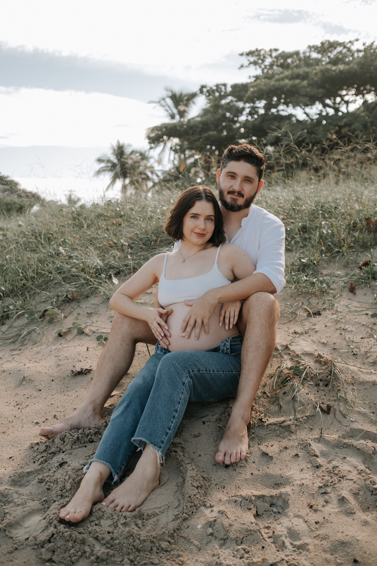 O ensaio gestante da Bianca e do Gabriel foi realizado na praia, criando um cenário leve e natural para registrar a espera pelo Dante.