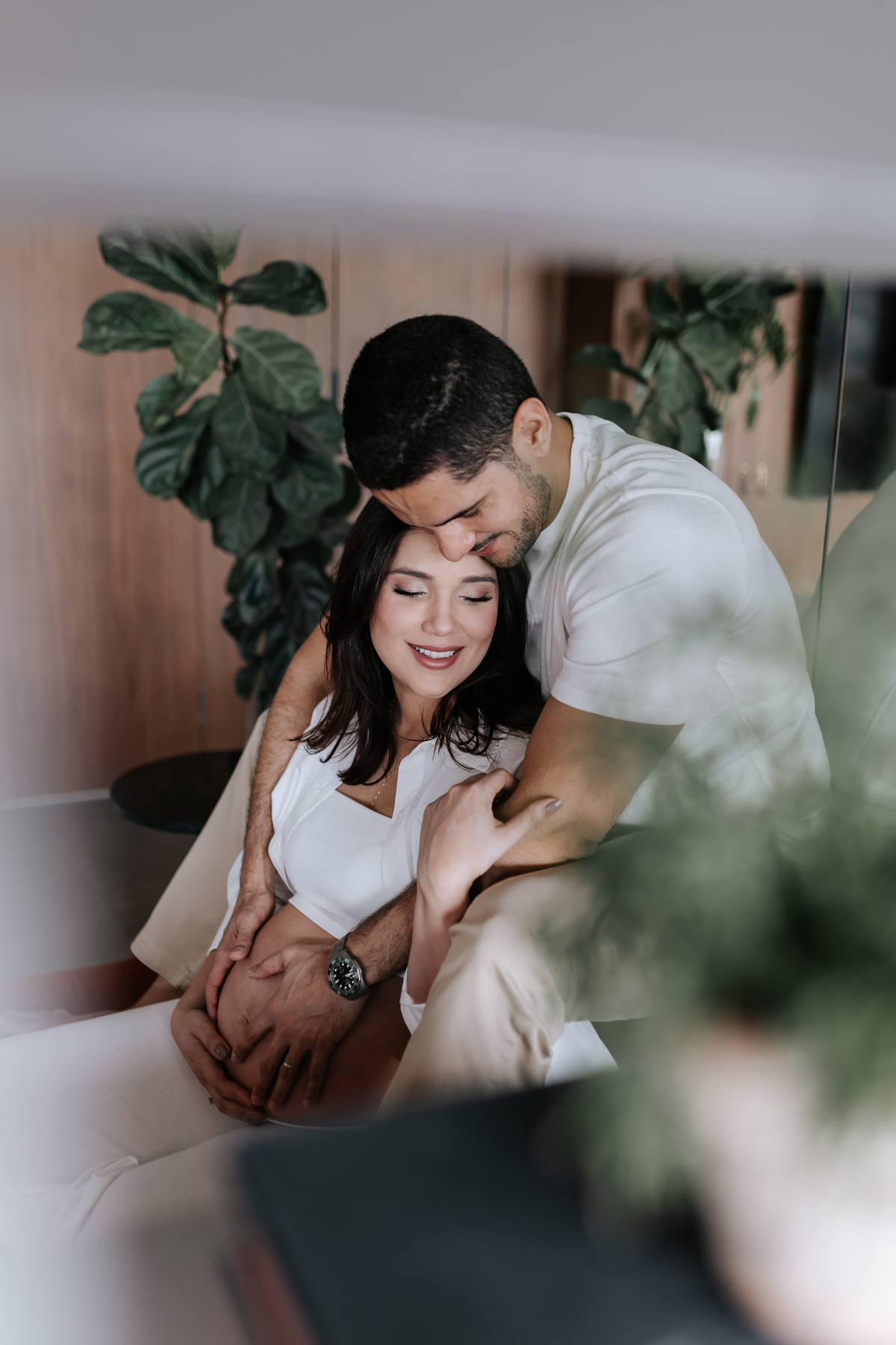 O ensaio gestante da Dandara e do Pedro foi realizado em casa, criando um ambiente íntimo e acolhedor para registrar a espera pelo Joaquim.