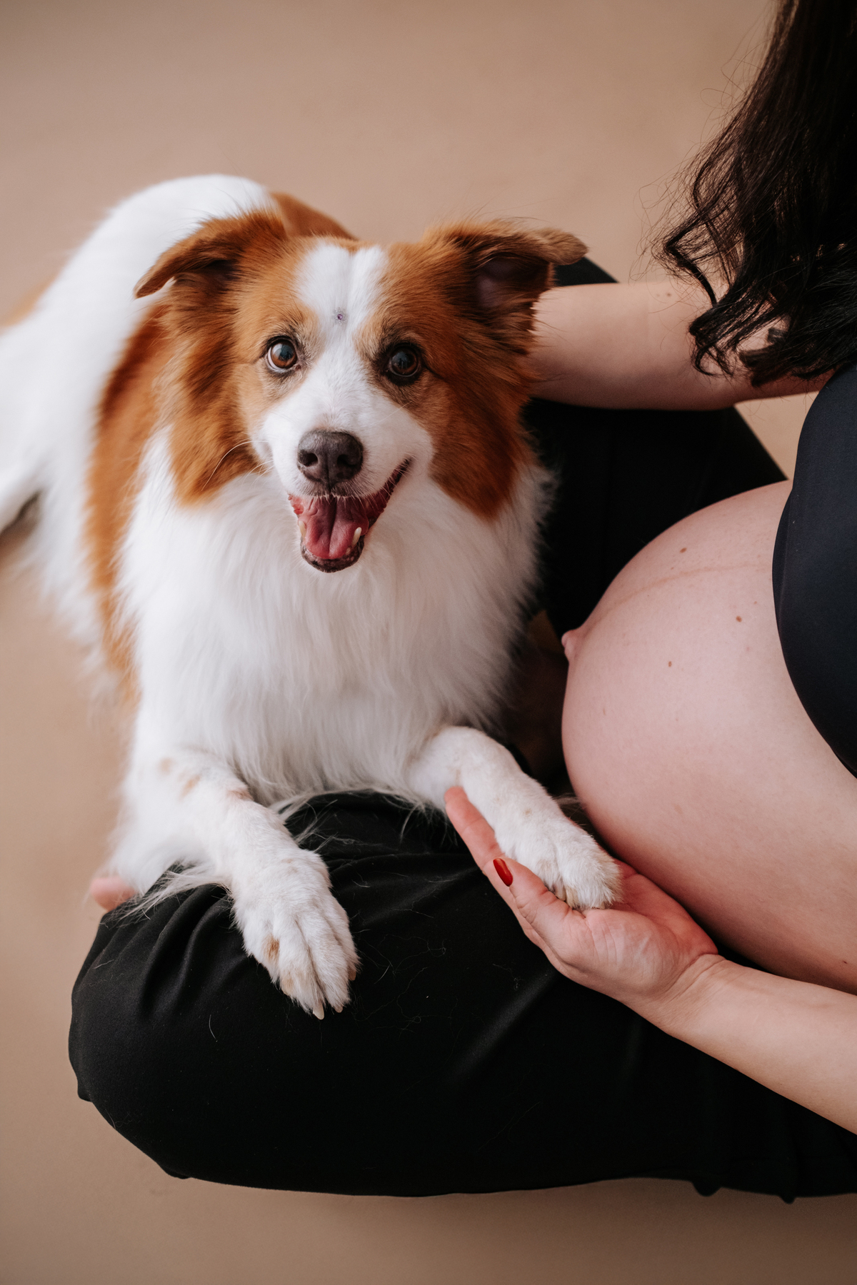 Com um olhar documental, realizamos o ensaio gestante valorizando a interação do casal e a presença do cachorro, que faz parte dessa história.