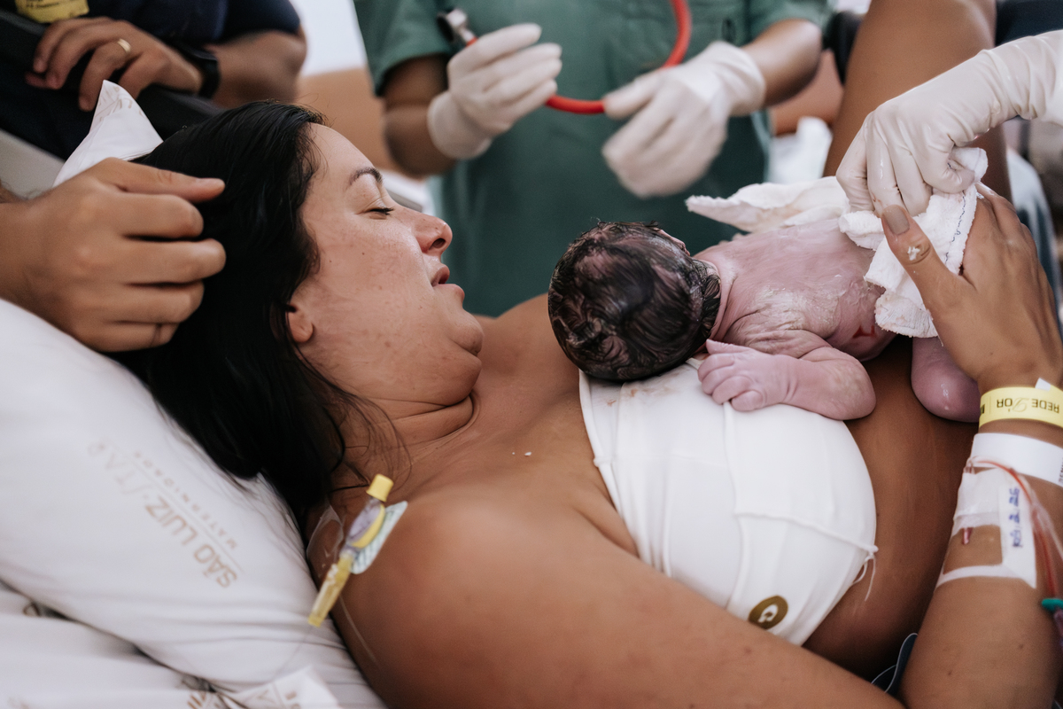 O parto normal aconteceu de forma intensa e cheia de significado, e durante todo o processo registramos com um olhar documental, respeitando o tempo e a experiência vivida pela família.