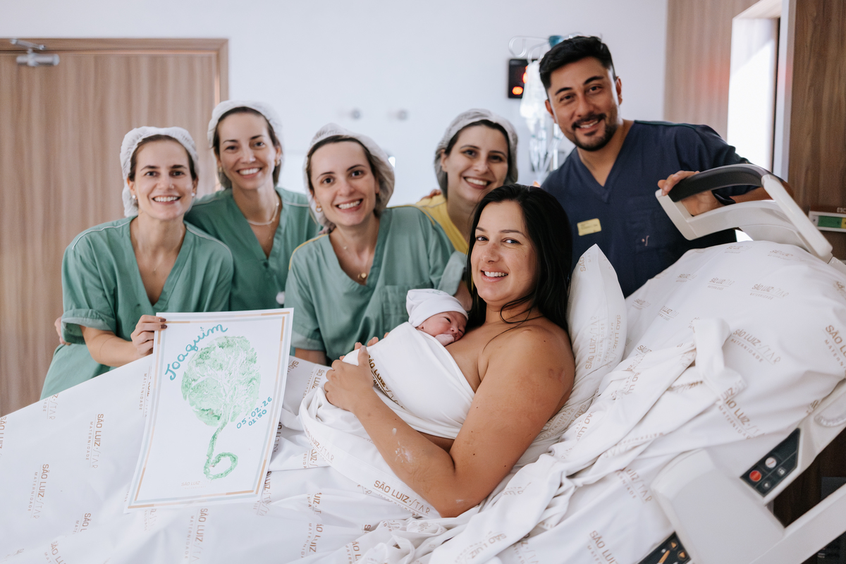 O nascimento do Joaquim foi registrado por nossa equipe de fotografia e vídeo de parto na Maternidade São Luiz Star, com acompanhamento da Dra. Mariana Guazzelli. Para Raquel e Victor, esse momento marcou a chegada do segundo filho, ampliando a história da família.