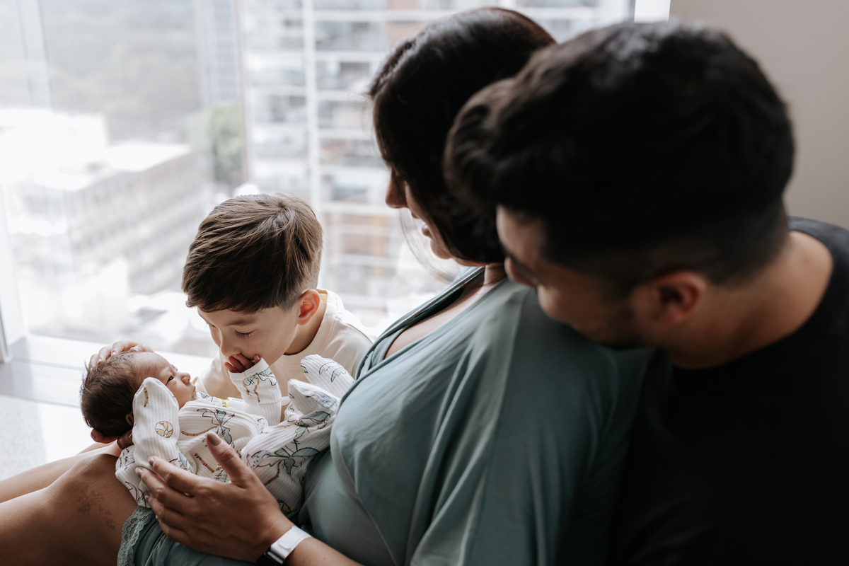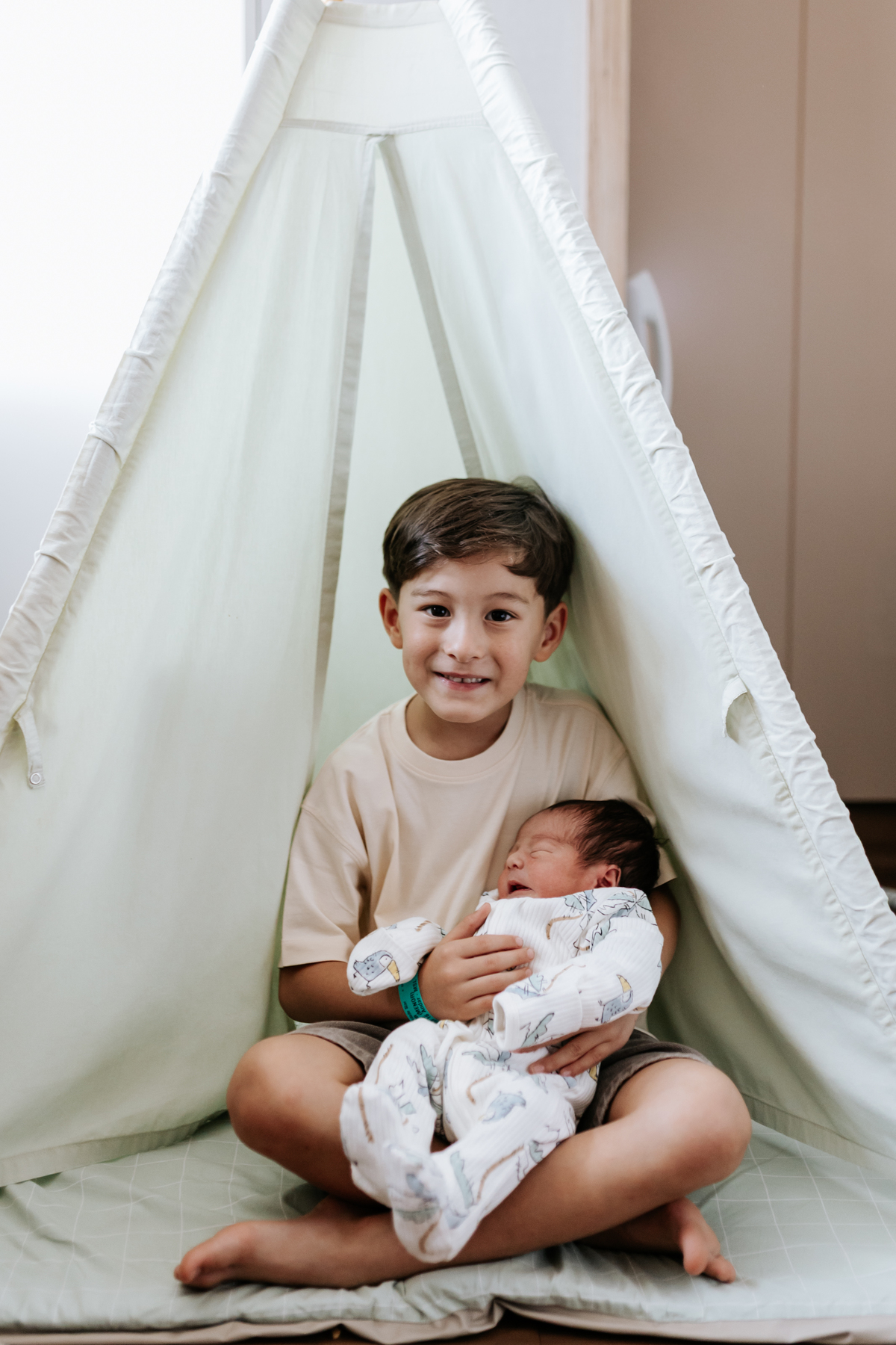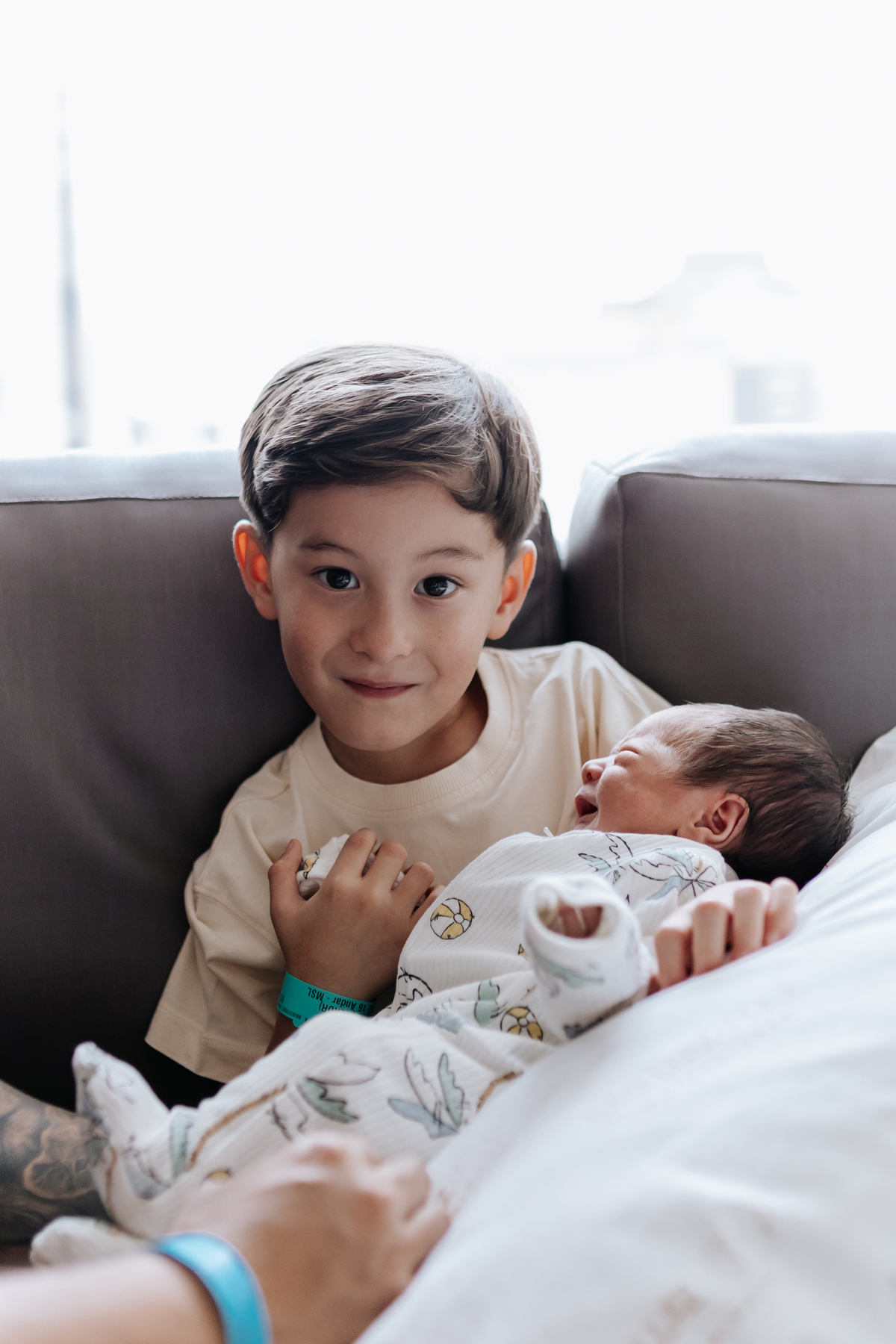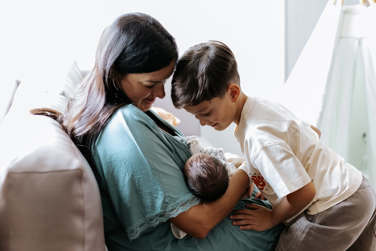No dia seguinte, retornamos à maternidade para acompanhar um momento especial: o encontro do irmão João Pedro, de 5 anos, com o Joaquim. Um registro cheio de carinho, descobertas e conexão entre os irmãos.