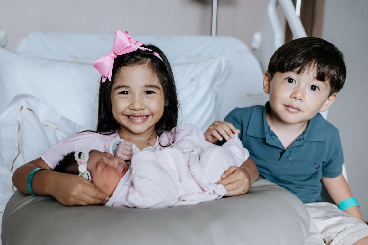 No dia seguinte, retornamos à maternidade para registrar o encontro dos irmãos com a Cecília, um momento cheio de carinho e significado para a família.