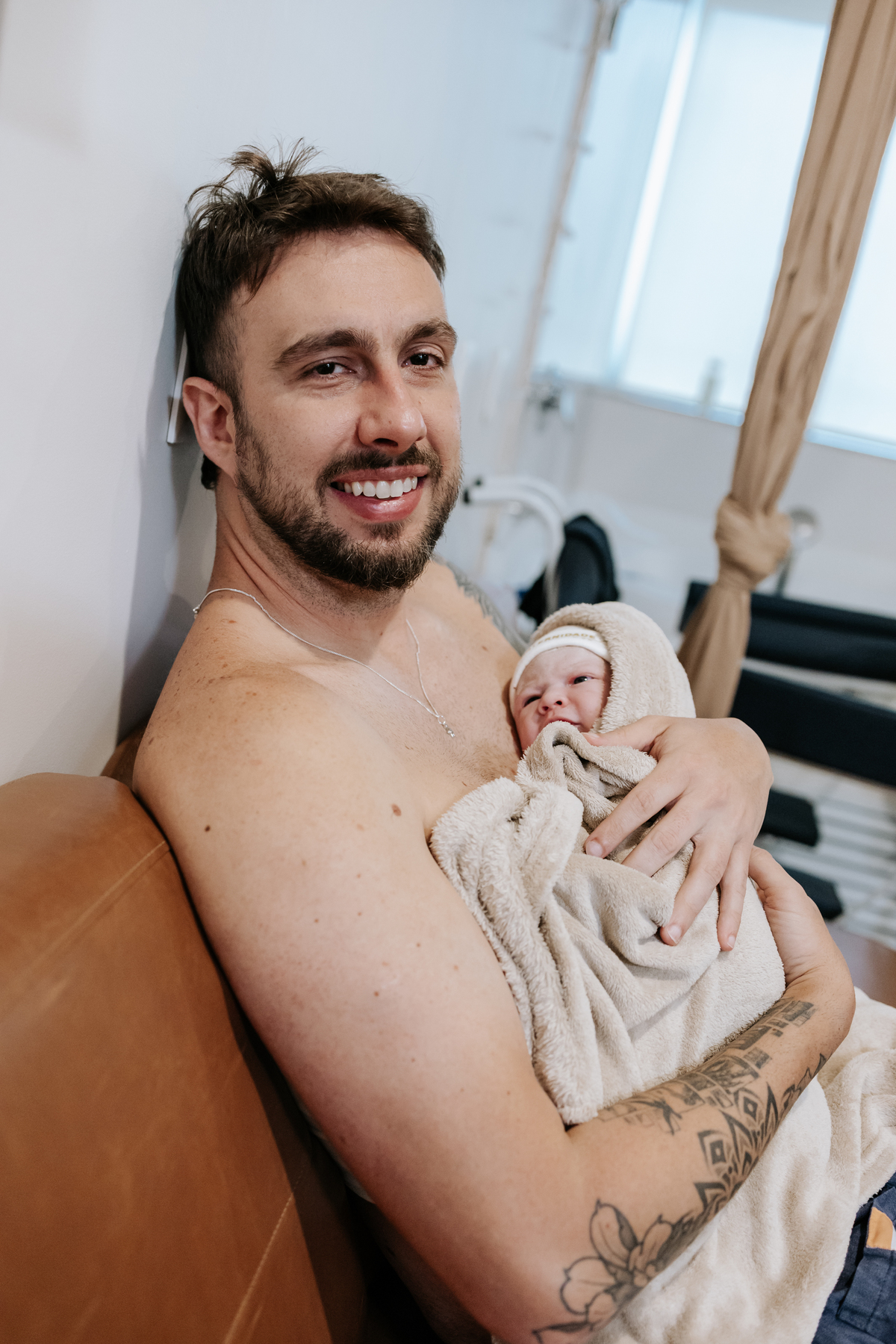 O parto normal aconteceu de forma tranquila, respeitando o tempo da mãe e a evolução do trabalho de parto, em um ambiente acolhedor e cheio de significado.