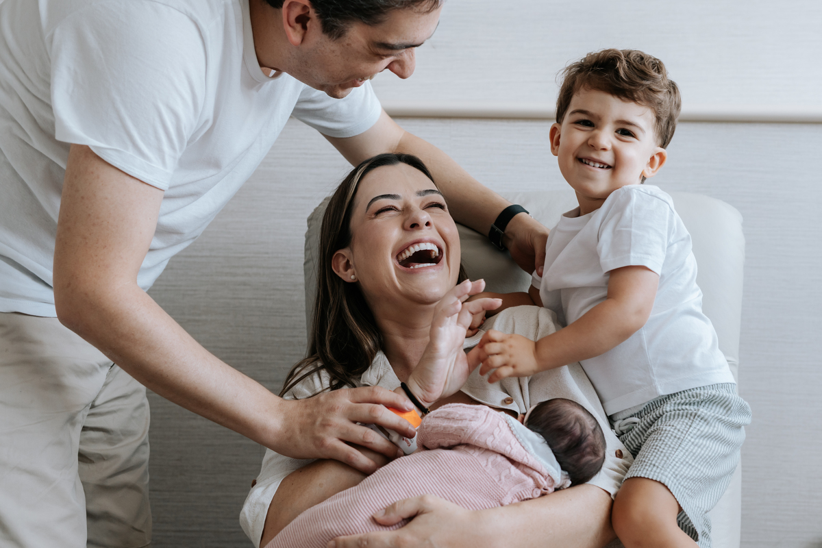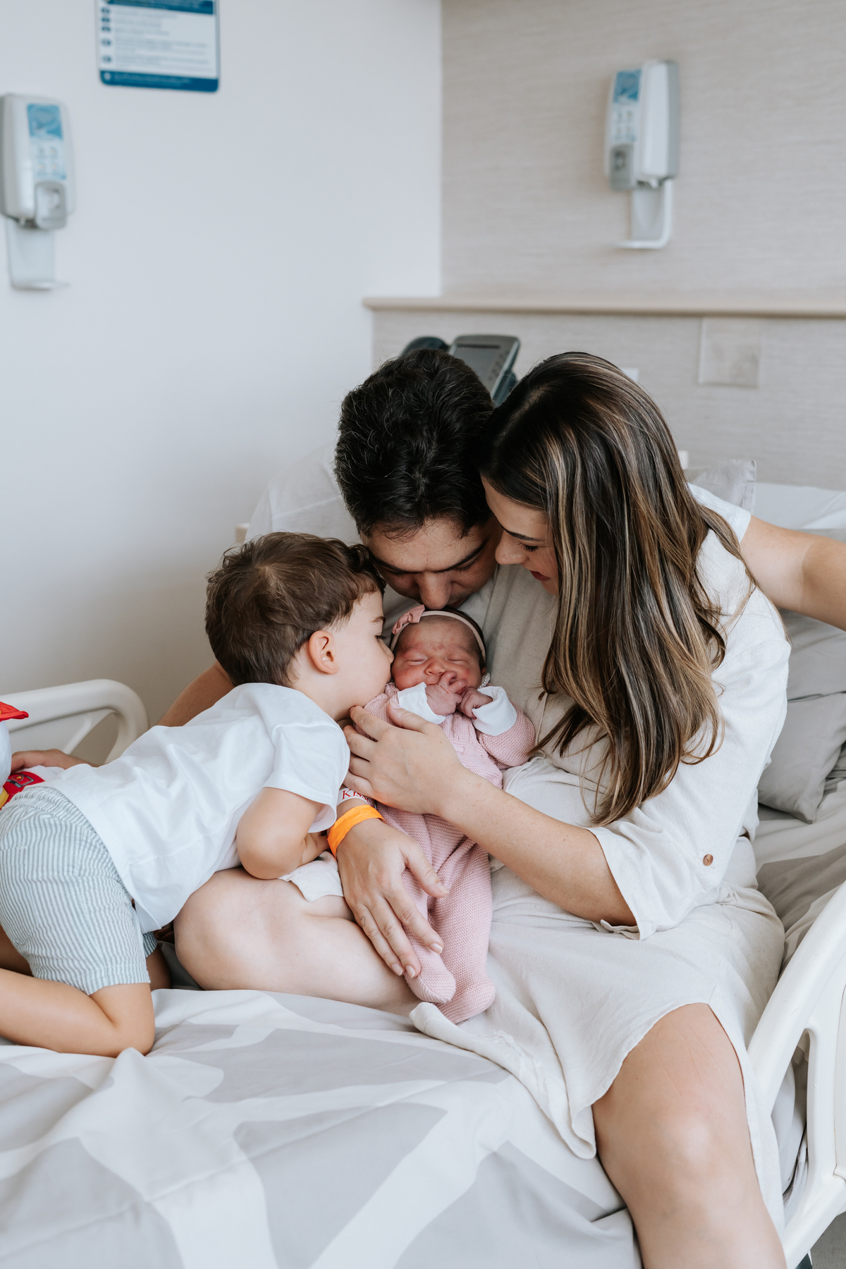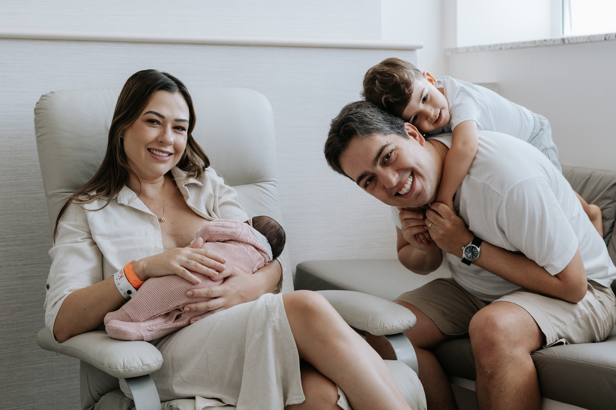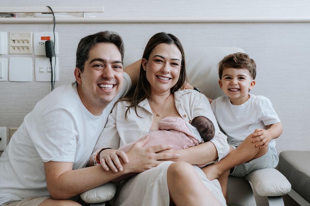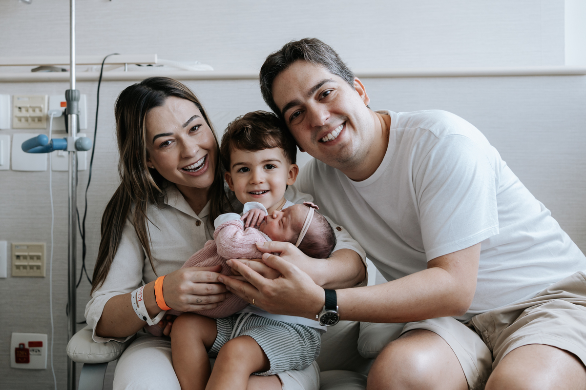 No dia seguinte, retornamos à maternidade para registrar os primeiros momentos no quarto e um encontro muito especial: o irmão Daniel, de 2 anos, conhecendo a Helena pela primeira vez.