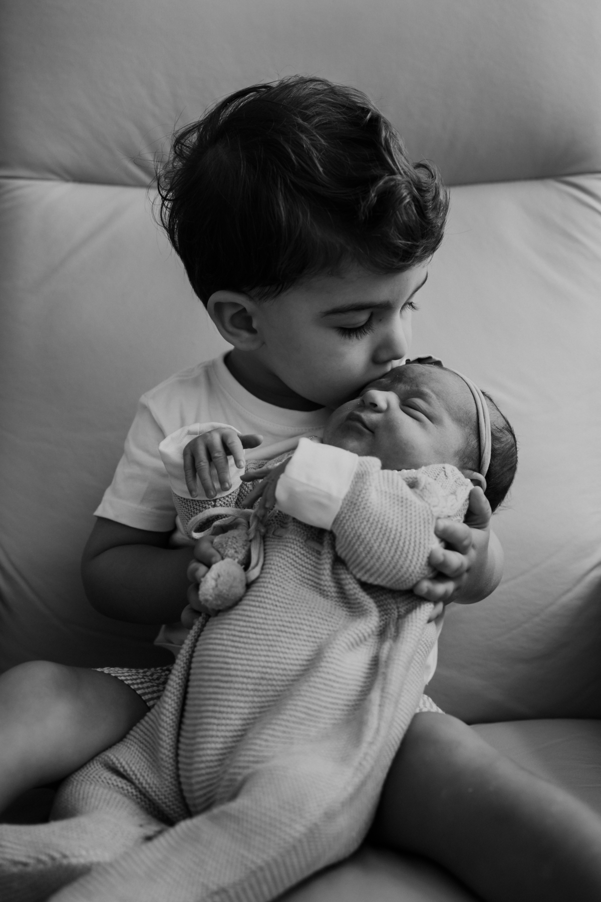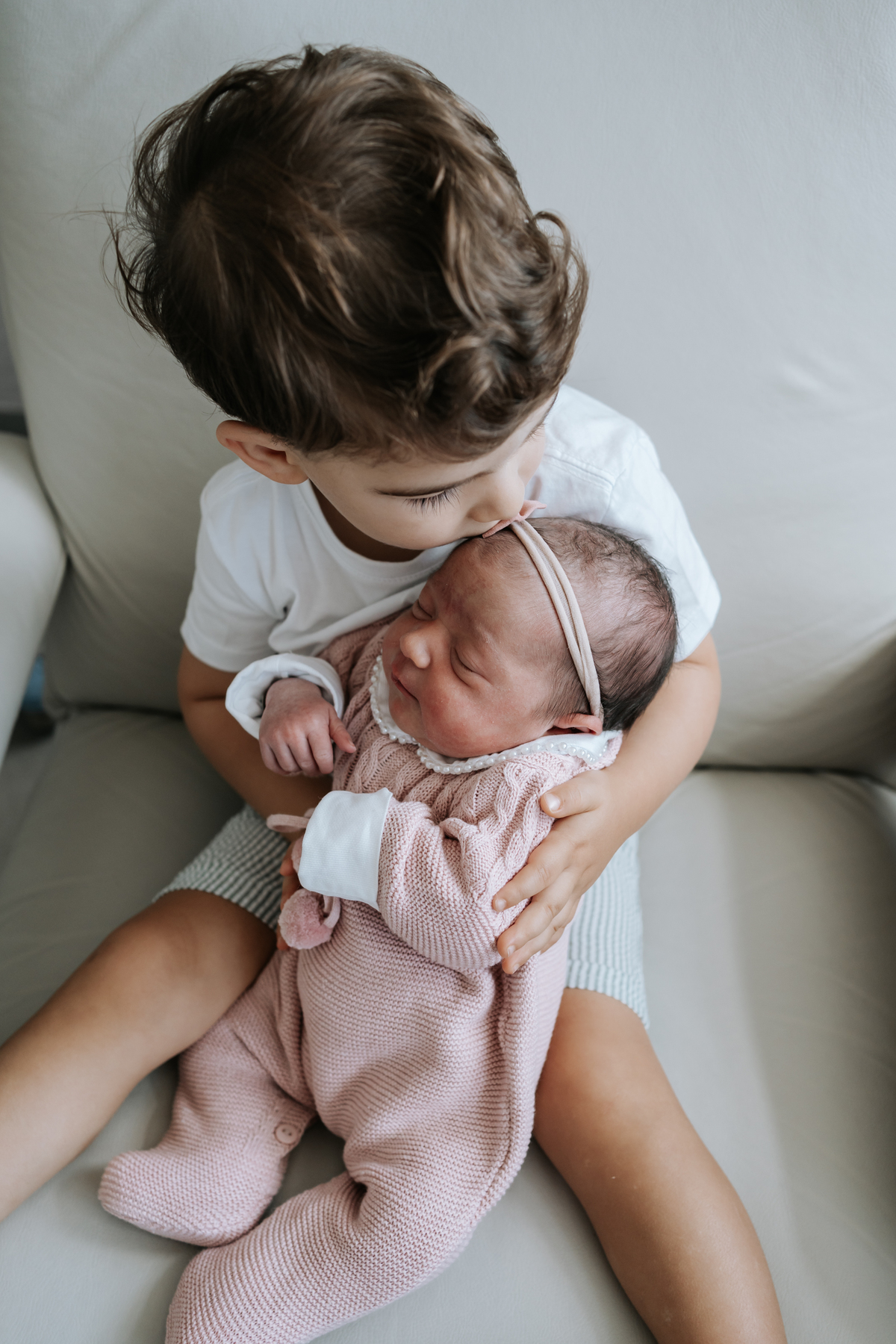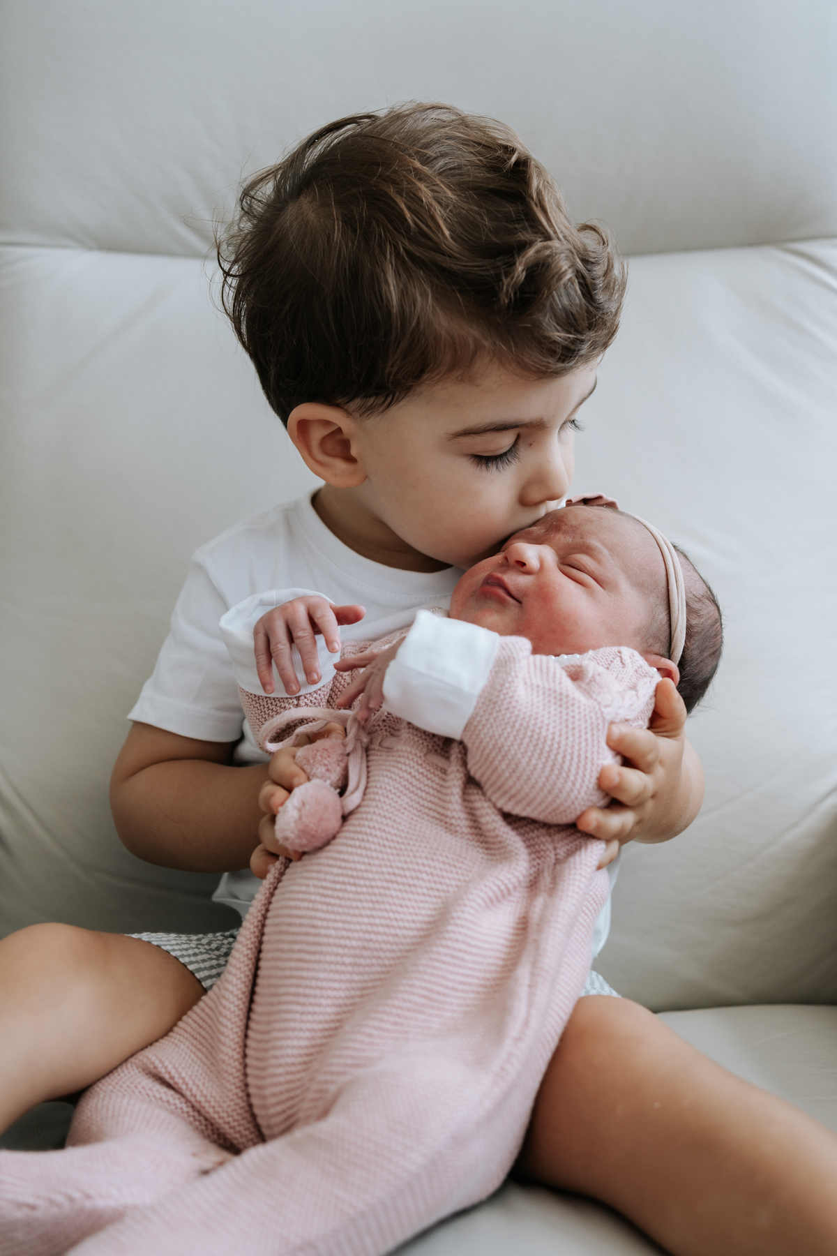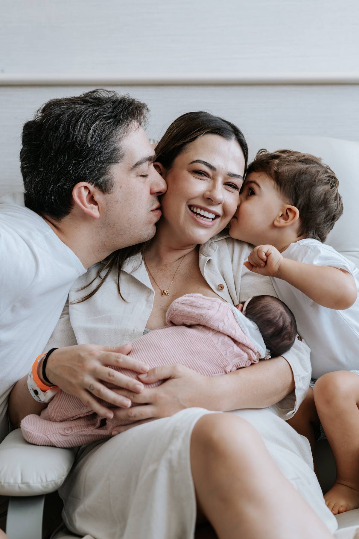 No dia seguinte, retornamos à maternidade para registrar os primeiros momentos no quarto e um encontro muito especial: o irmão Daniel, de 2 anos, conhecendo a Helena pela primeira vez.