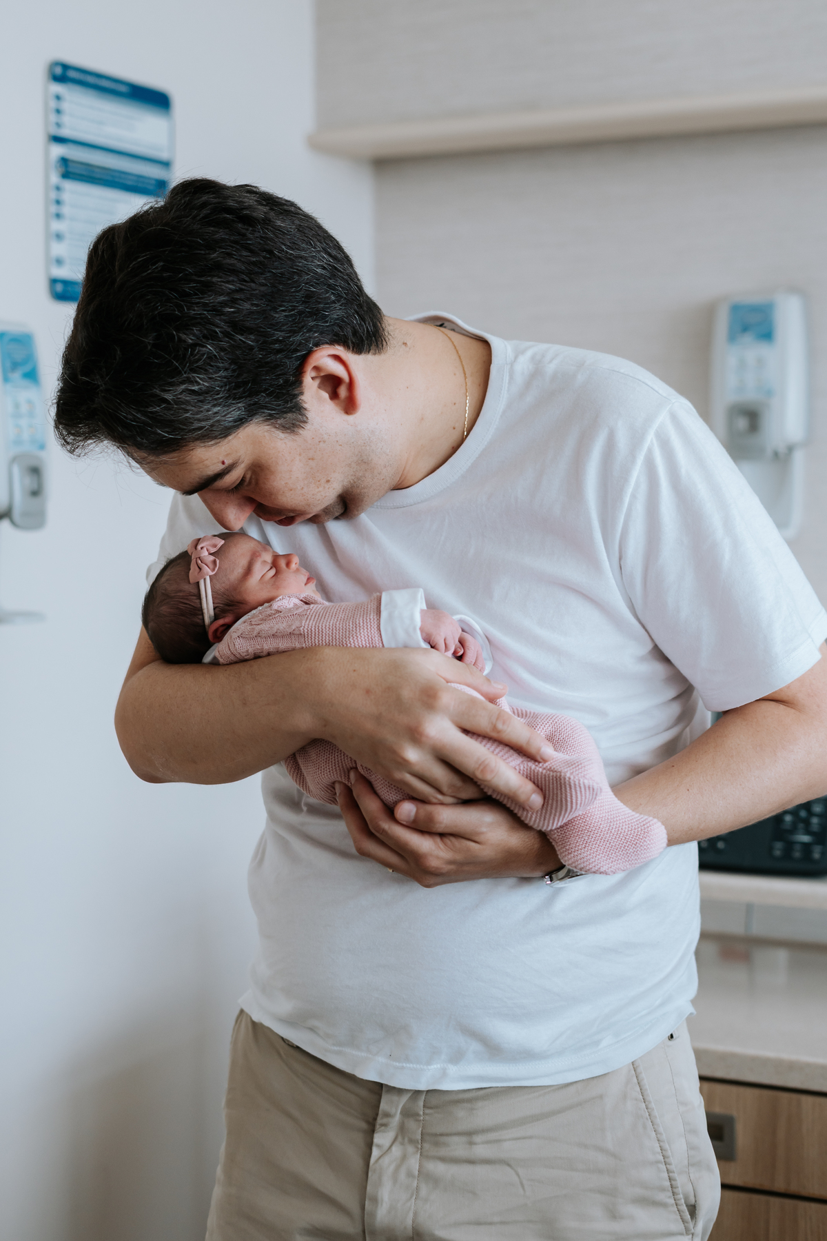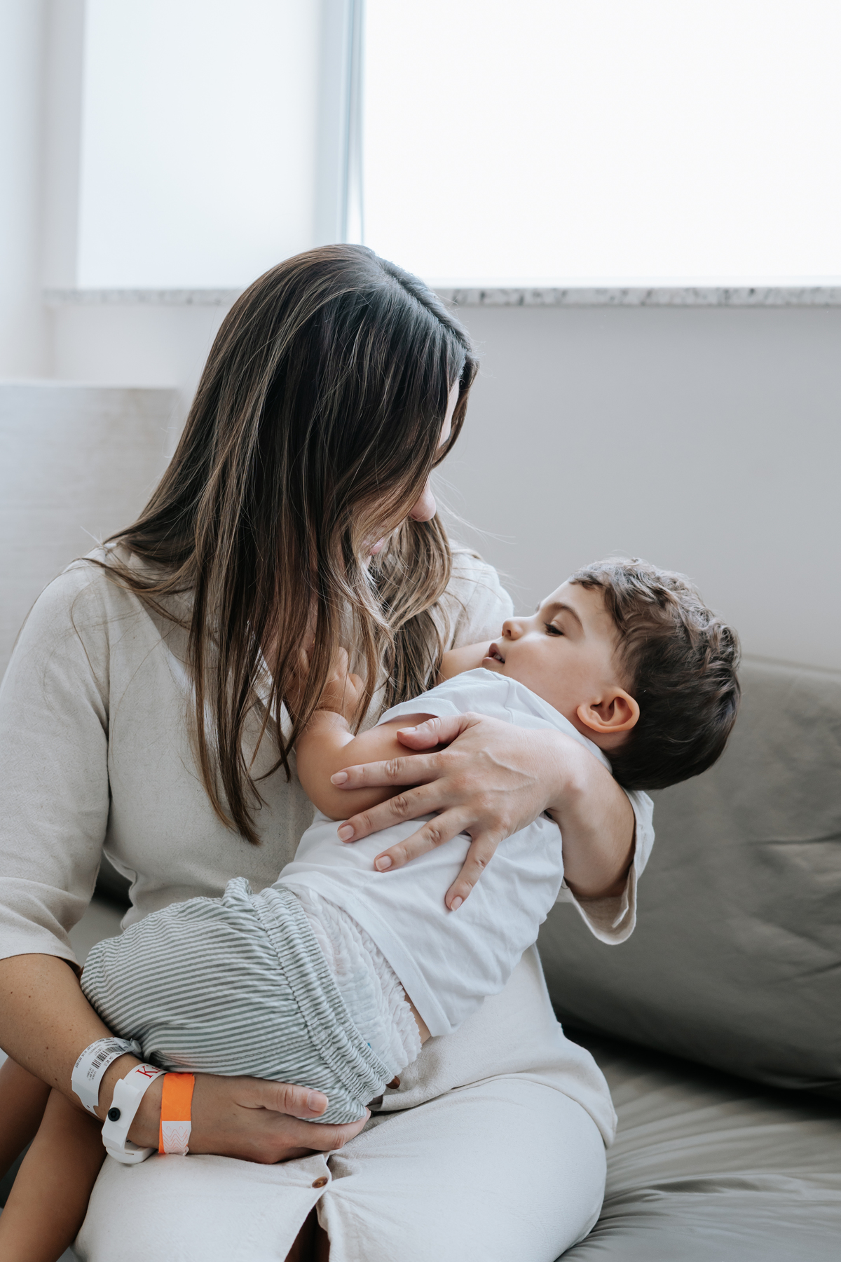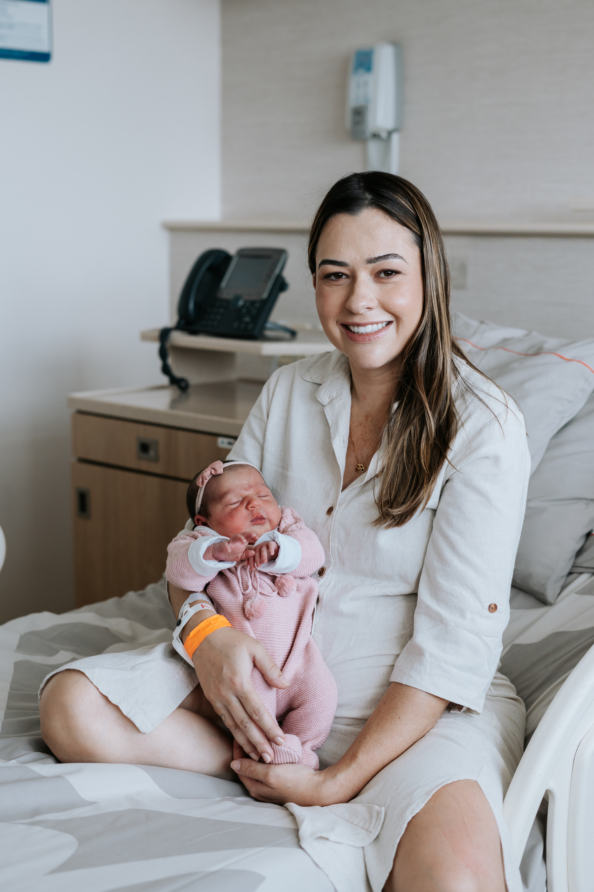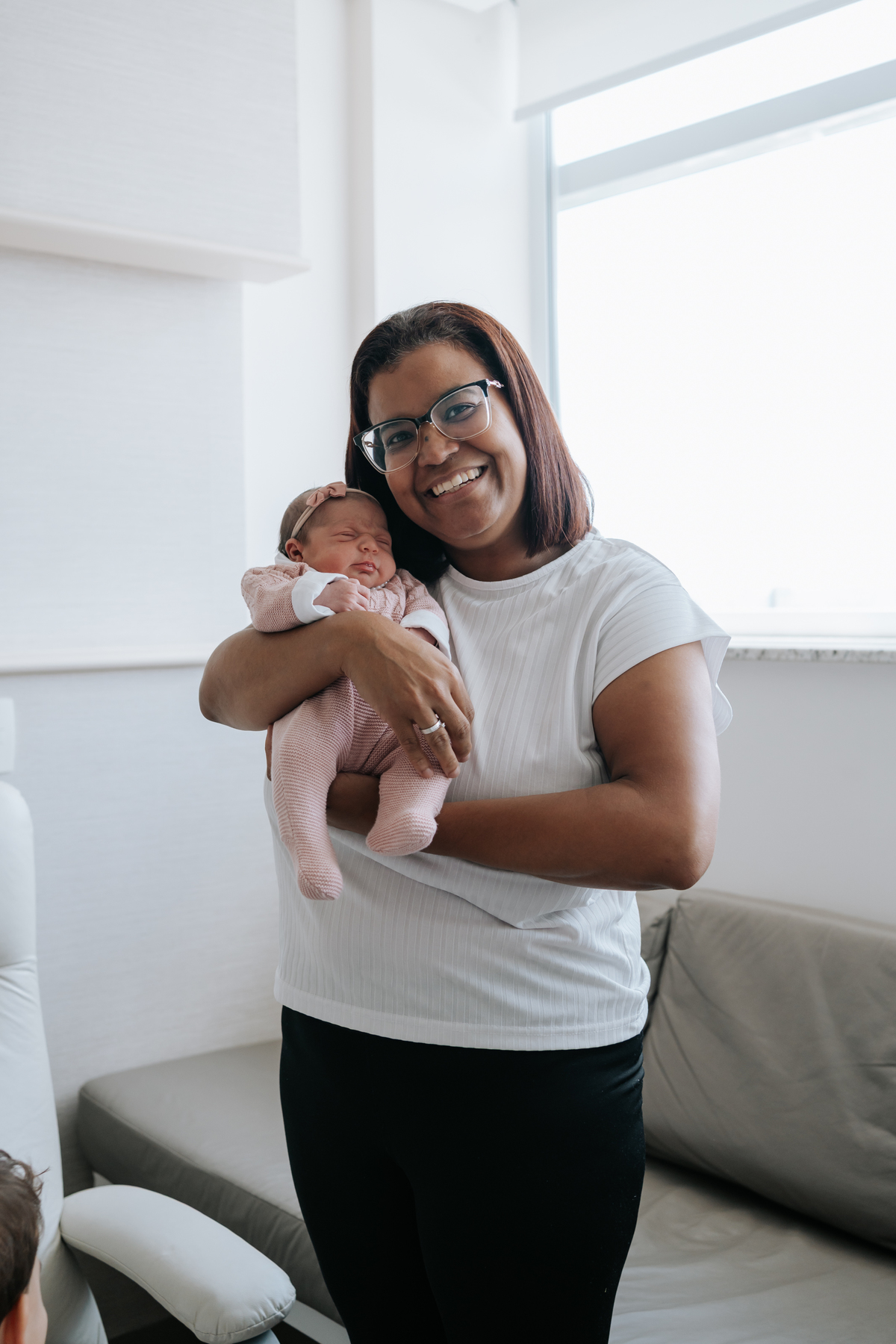 No dia seguinte, retornamos à maternidade para registrar os primeiros momentos no quarto e um encontro muito especial: o irmão Daniel, de 2 anos, conhecendo a Helena pela primeira vez.