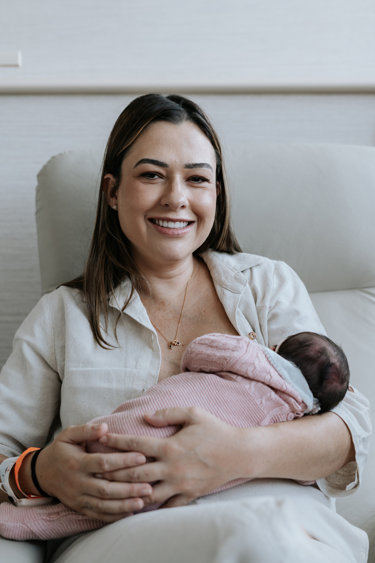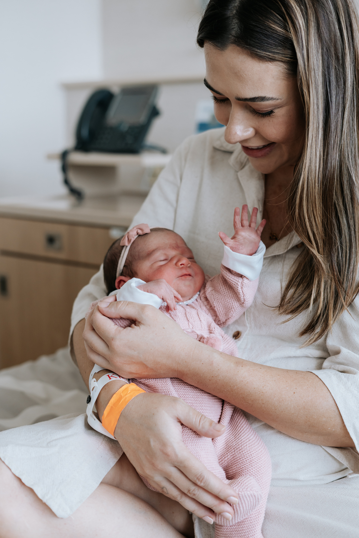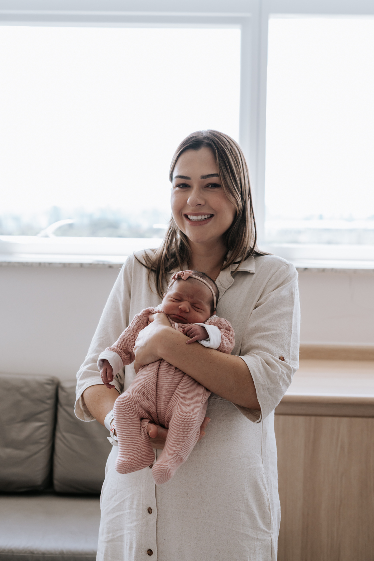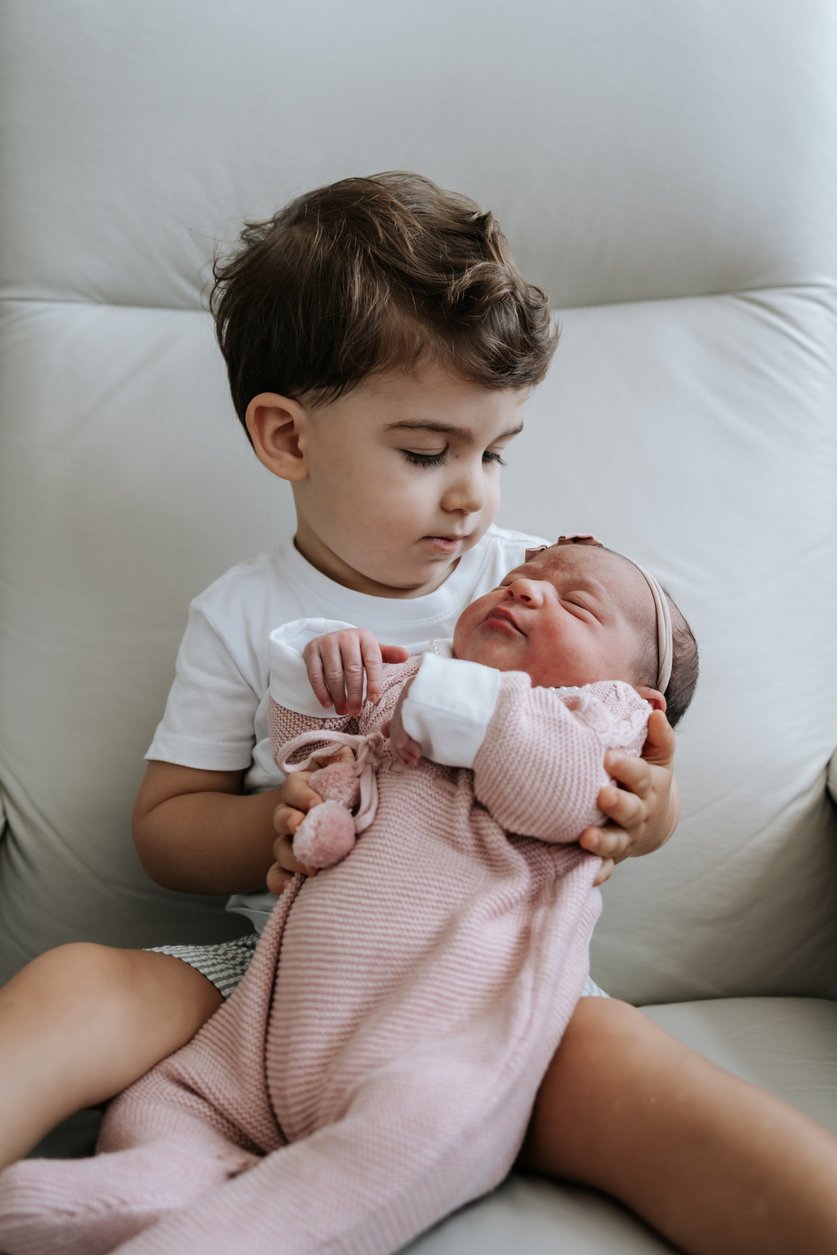 No dia seguinte, retornamos à maternidade para registrar os primeiros momentos no quarto e um encontro muito especial: o irmão Daniel, de 2 anos, conhecendo a Helena pela primeira vez.