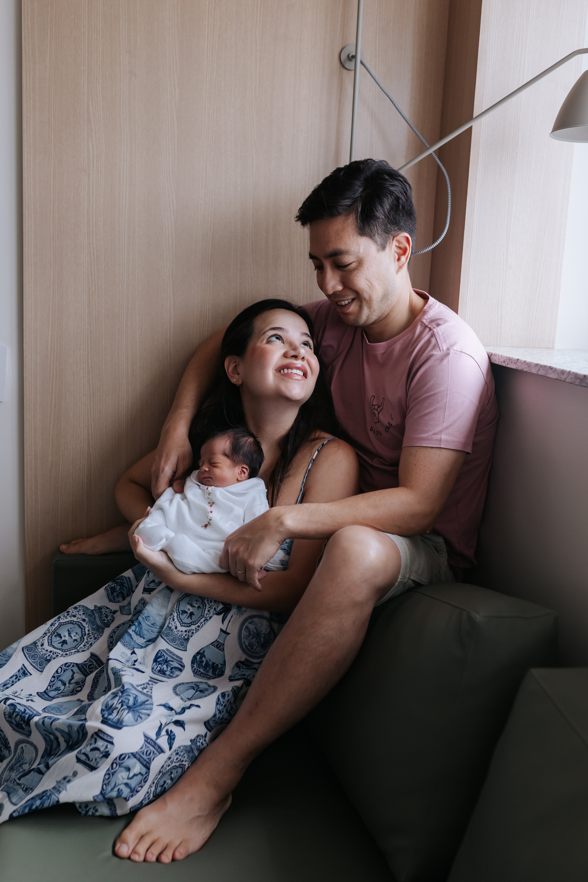 Em um ambiente tranquilo, a família viveu esse início com calma e conexão, valorizando os primeiros contatos e os cuidados com a bebê.