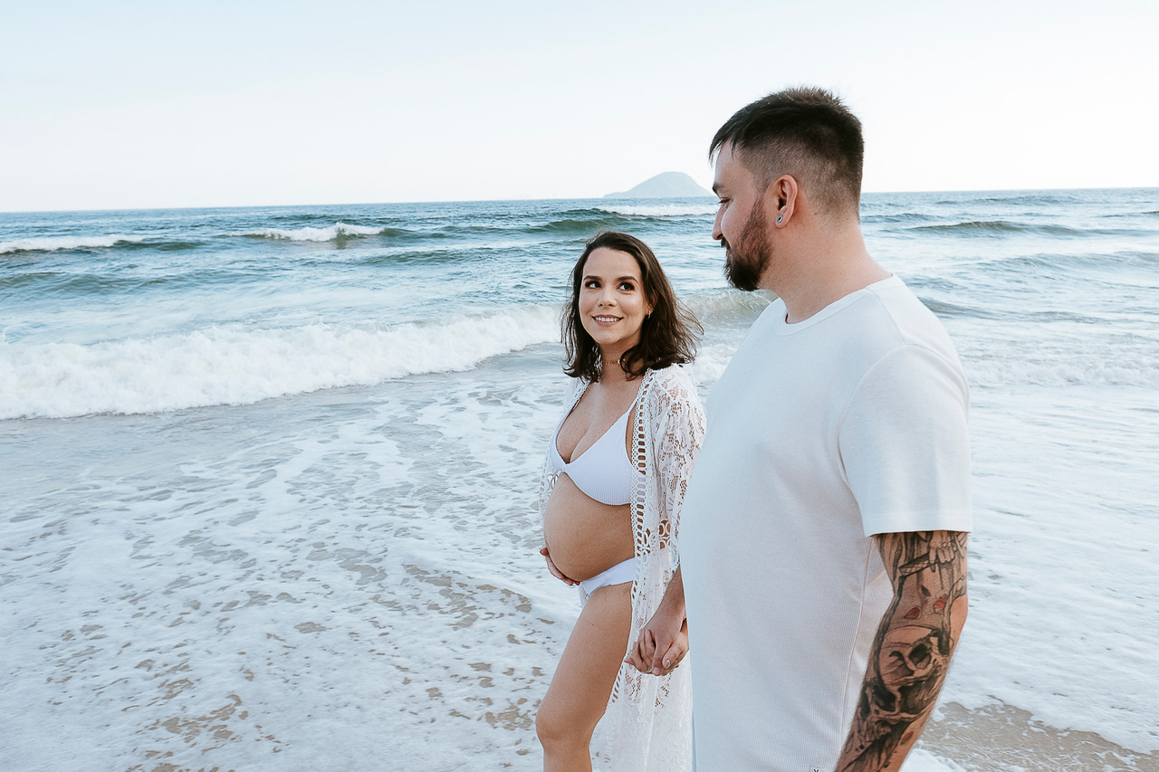 Ensaio Gestante na Praia: Dicas para suas fotos em Santos, Guarujá e Litoral Norte.