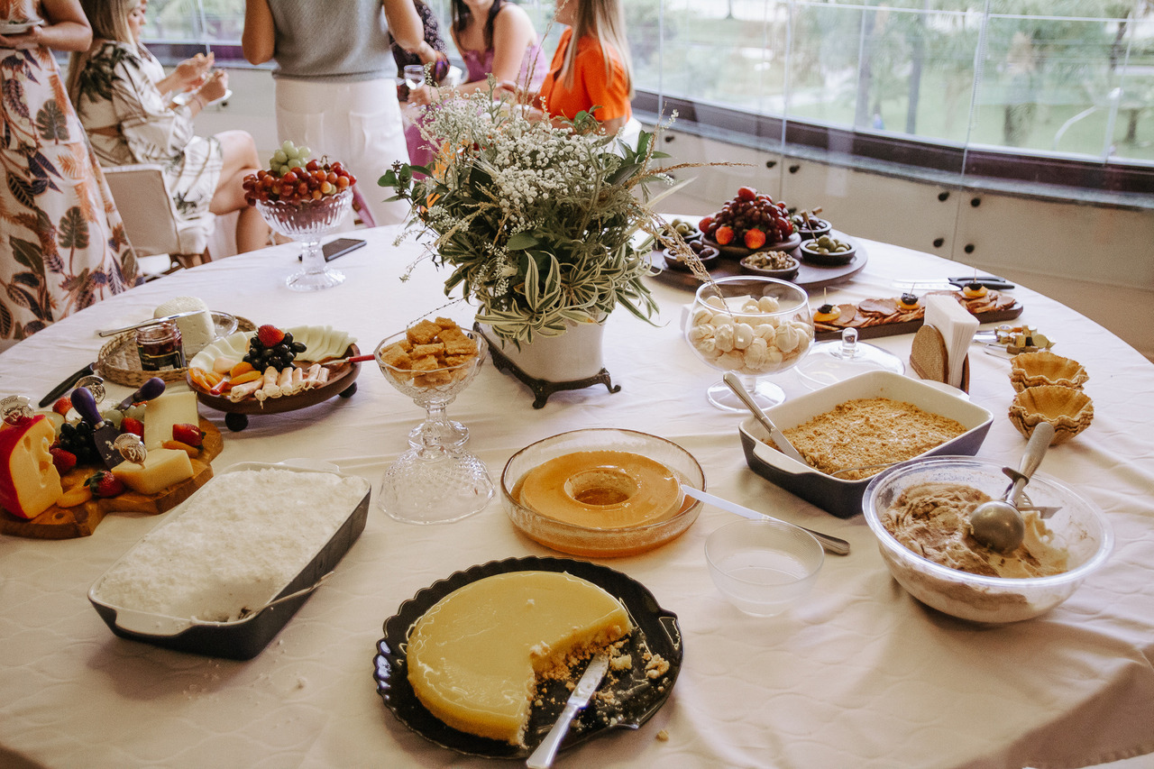 Para o menu ideal, você deve analisar o horário e o tipo da festa. Uma dica legal para chás de bebê à tarde é investir em bolos, tortas e salgados em geral. Encomendar salgadinhos pode ser uma ótima opção se você quer praticidade. Aposte em comidinhas com as quais os próprios convidados possam se servir.