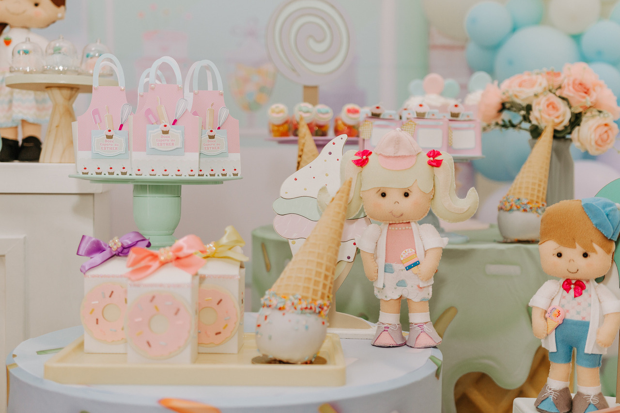 Não se esqueça da mesa de doces! Você pode montar uma mesa simples, com docinhos caseiros ou até mesmo encomendar alguns doces personalizados com o tema da festa.