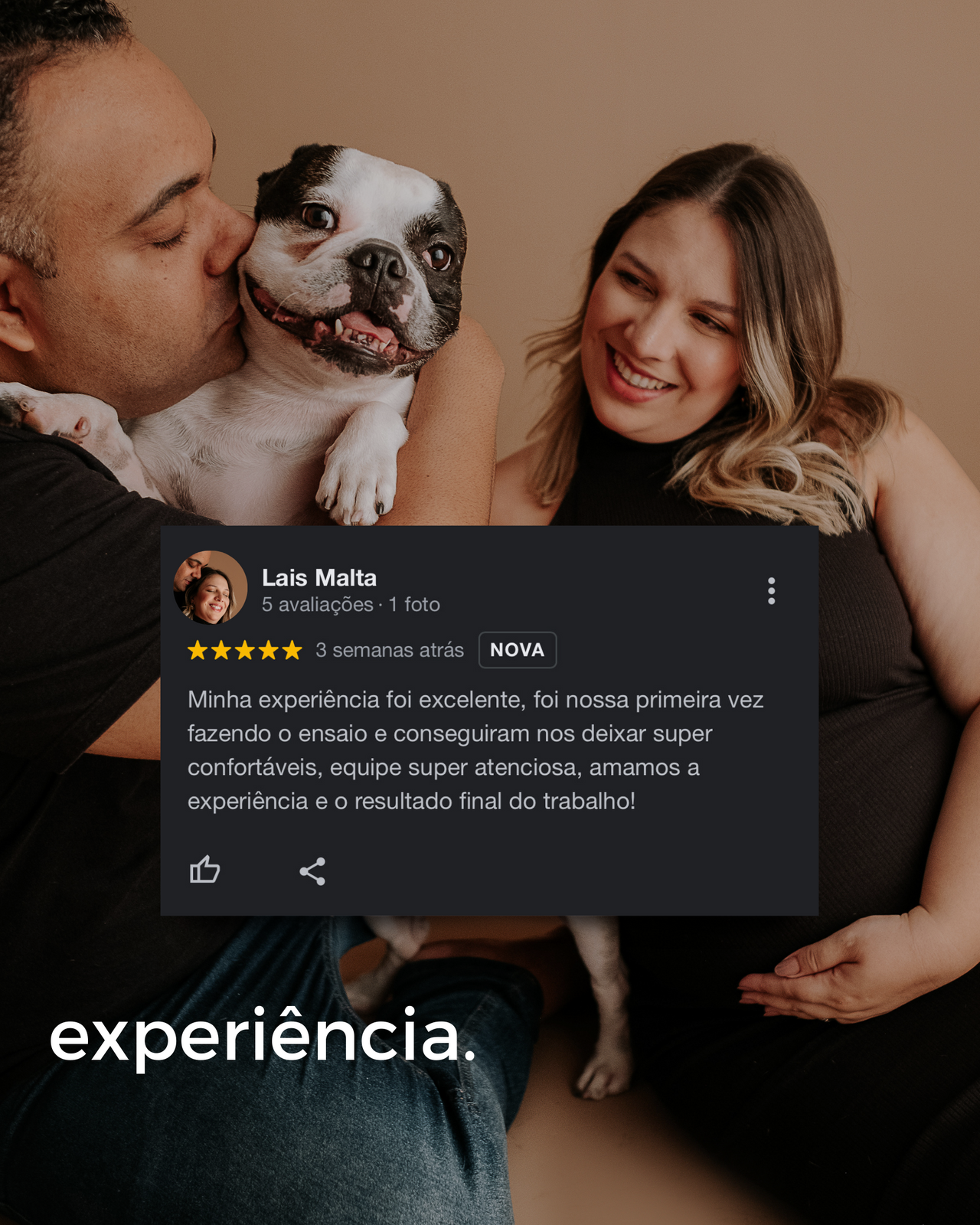 Além de um briefing que nos ajuda a te conhecer melhor e trazer mais algumas novas ideias para o seu ensaio.