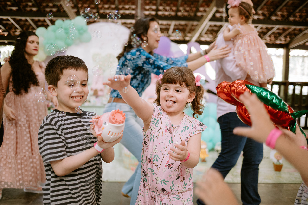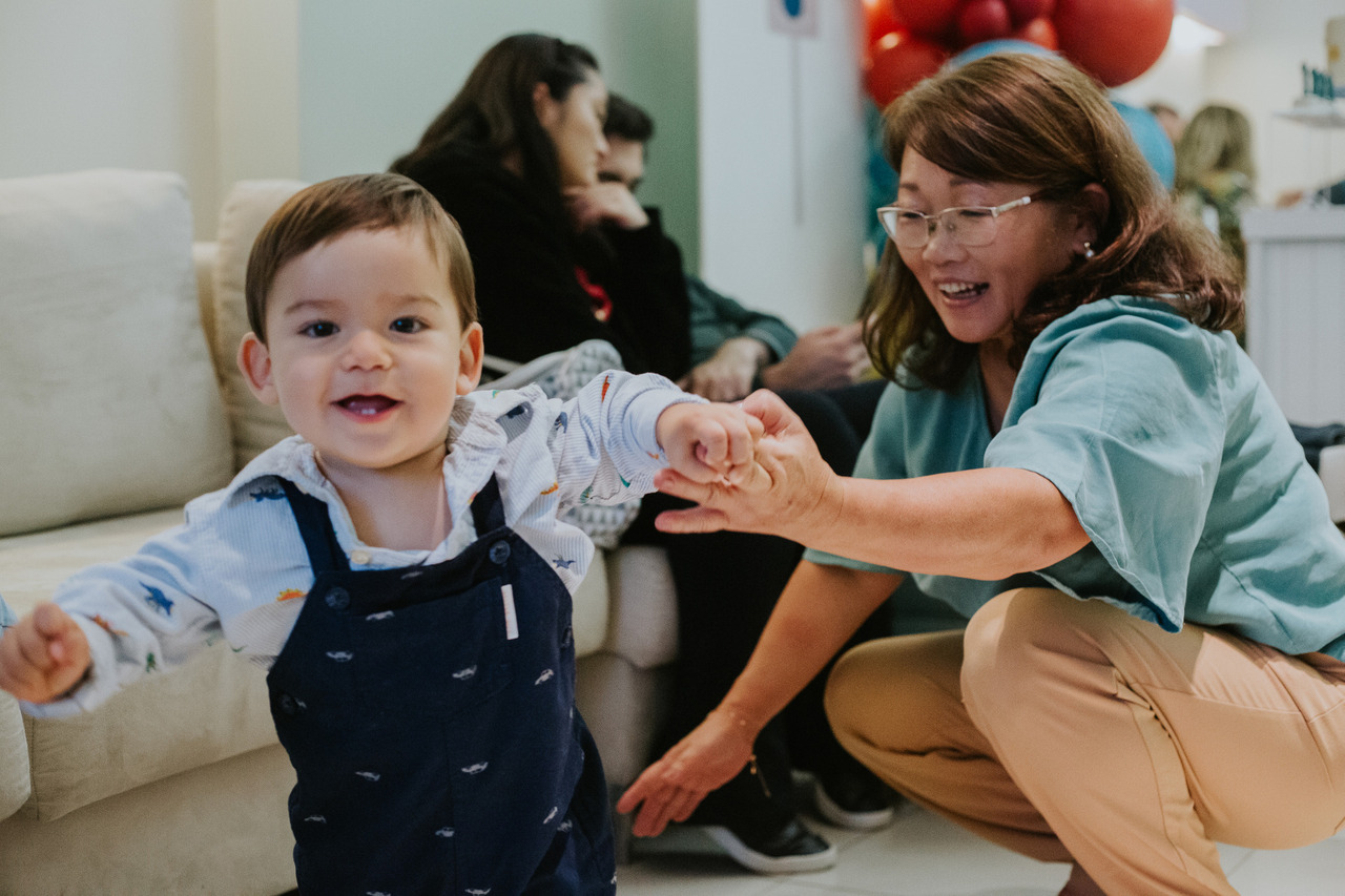 Com convidados mais próximos da família, os pais ficam a vontade para que todos possam curtir enquanto nós registramos momentos espontâneos de brincadeiras e interação com convidados e familiares.